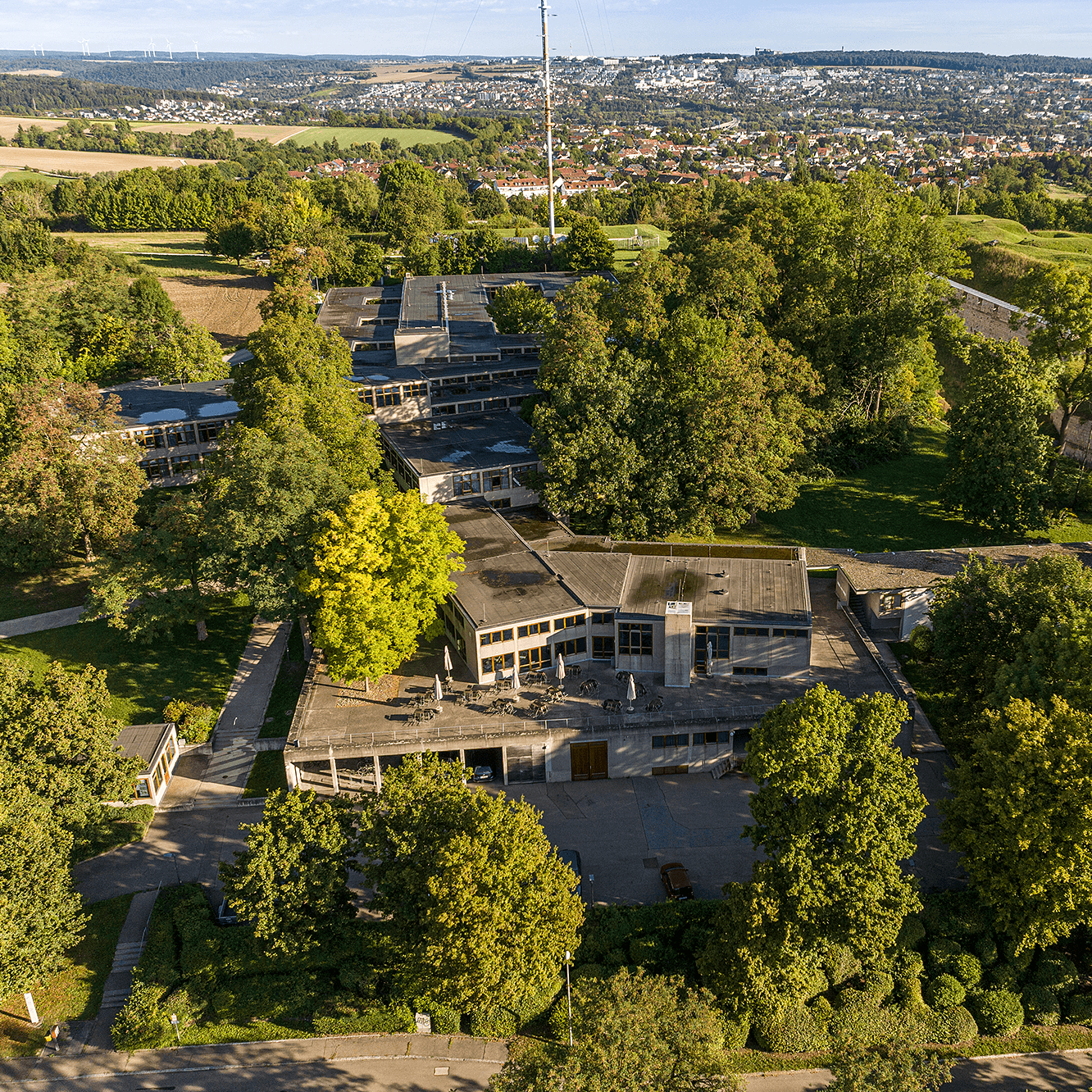 Die Räumlichkeiten unserer Tagesklinik befinden sich in der Hochschule für Gestaltung, einer ehemaligen, 1953 gegründeten und international bedeutenden Design-Hochschule. Die denkmalgeschützten Räume mit ihrer an den Bauhaus-Stil anknüpfenden „konkreten Architektur“ schaffen eine besondere Umgebung, die sich durch ihre zeitlose Klarheit für Psychotherapie geradezu anbietet. So hatte sich bereits lange vor der Gründung der Privaten Tagesklinik die Abteilung für Psychosomatische Medizin des Universitätsklinikums über Jahrzehnte an diesem Standort befunden und psychotherapeutische Praxis und Forschung auf moderne und lebendige Weise verbunden.